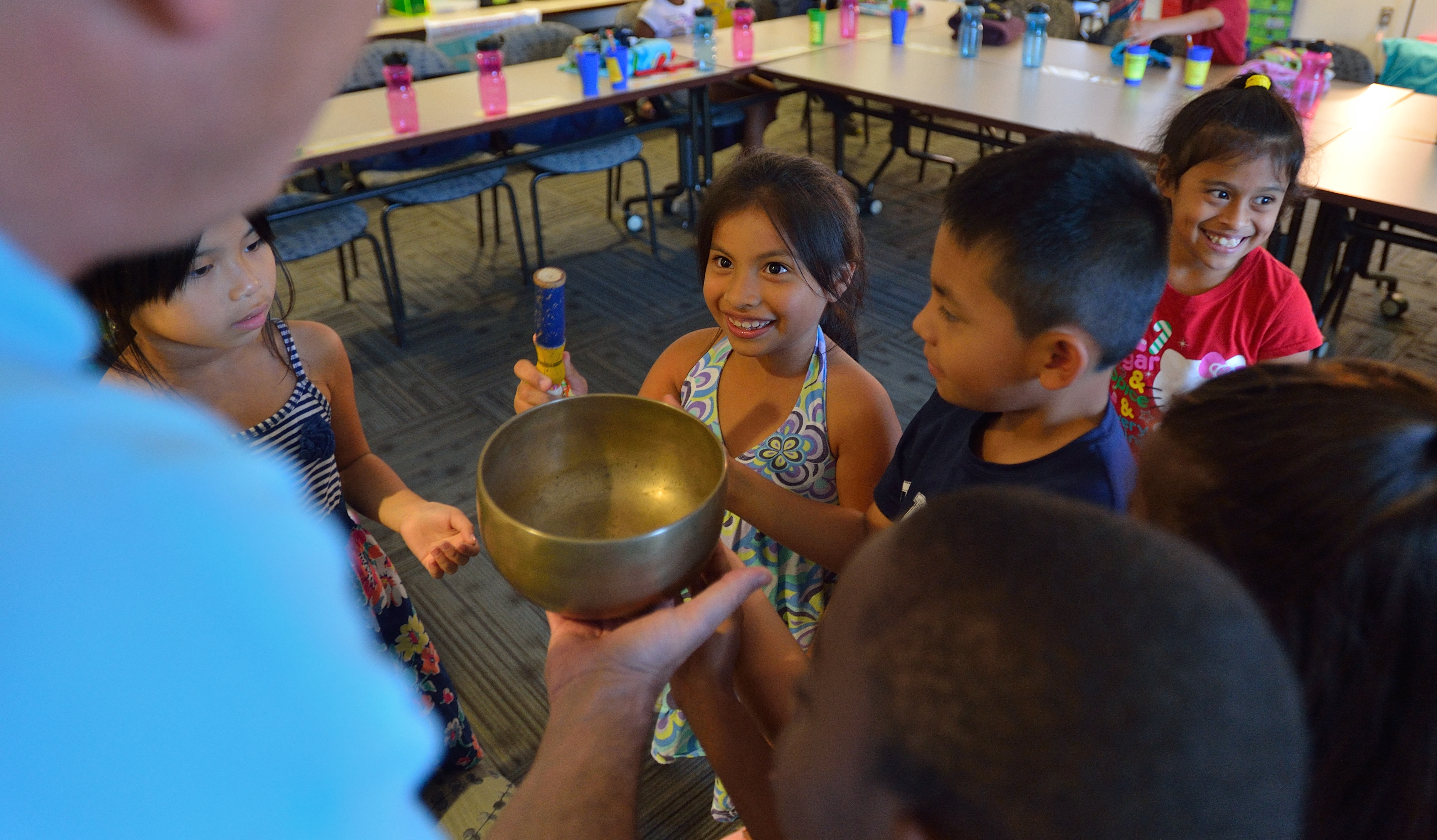 I am grateful to be in the second summer of bringing mindfulness practices into the classroom of kindergarten, first and second graders at Ole Miss as part of the Horizons National program. We have Mindful Mondays in which we practice getting to know our breath, finding our still quiet place within, sharing heartfulness with ourselves and others, smiling yoga, and tuning our attention to the sound of the mindfulness bell. The light in their faces is extraordinary.